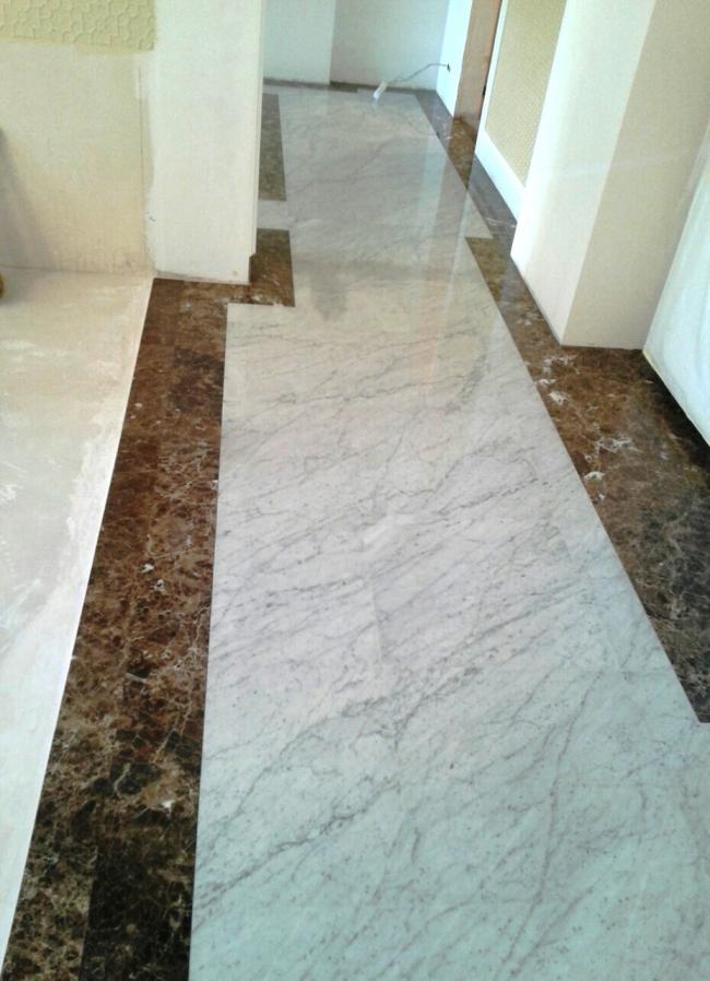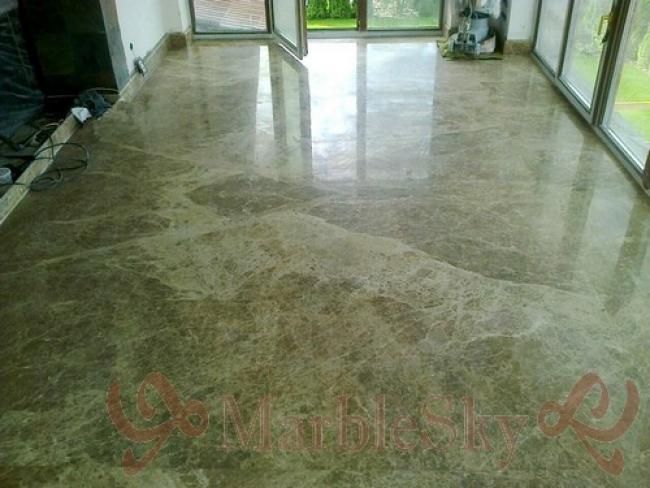 Мраморный пол в любой из комнат вашего дома вмиг преображает интерьер, вносит в него нотку строгости, античности и стиля. Наши специалисты предлагают клиенту широкий ассортимент разновидностей мраморного пола – это может быть не просто однотонное, серое натуральное покрытие, а настоящая игра сочетания цвета и узора. Мы предлагаем интересные идеи в качестве мраморного покрытия пола – это мраморная плитка с разнообразными узорами, декоративными элементами, рисунками. Кроме того, что мастера «Marble Sky» предлагают клиенту изысканные варианты мраморного пола, мы также с удовольствием выполним для вас столешницы, столики, подоконники из мрамора на любой вкус Гарантийный срок обслуживания мраморного пола и стен составляет 12 месяцев. По истечению гарантийного срока, Мраморная Мастерская предлагает послегарантийное обслуживание изделий из натурального камня.