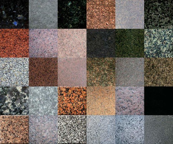Гранит может быть серый, белый, розовый и красный, и черный с различными вкраплениями. От окраски полевого шпата напрямую зависит какой будет цвет гранита. Блестящие, как искорки небольшие вкрапления в породе – это слюда, которая придает камню особый блеск и цвет.