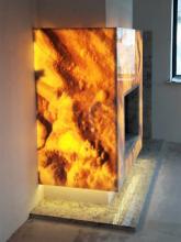 Камин из оникса может носить как чисто декоративный характер, так и быть полноценным отопительным камином, источником тепла, который при этом может потрясающе красивым и даже волшебными. Сам по себе оникс, является камнем аккумулирующий тепло.Свойства оникса пропускать свет до пяти сантиметров в глубину используются дизайнерами интерьера. Камин из оникса вы можете выбрать в любом цвете, ведь у данного камня довольно много оттенков, а сам камень имеет разную степень прозрачности. Встречаются также и экземпляры, которые свет не пропускают.
